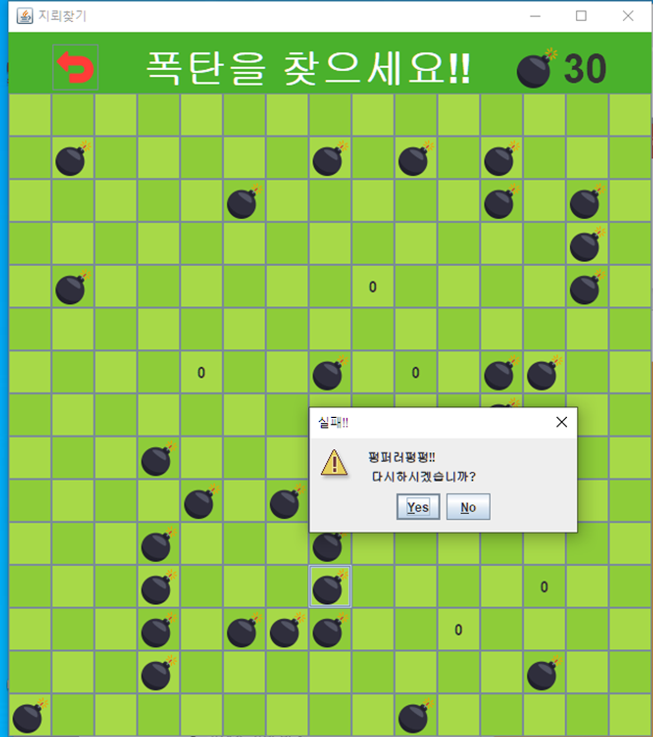 - 동기: 유튜브에서 카드 뒤집기 게임을 제작하는 영상을 보고, 이를 참고하여 폭탄 찾기 게임의 UI를 디자인하고 구현했습니다.